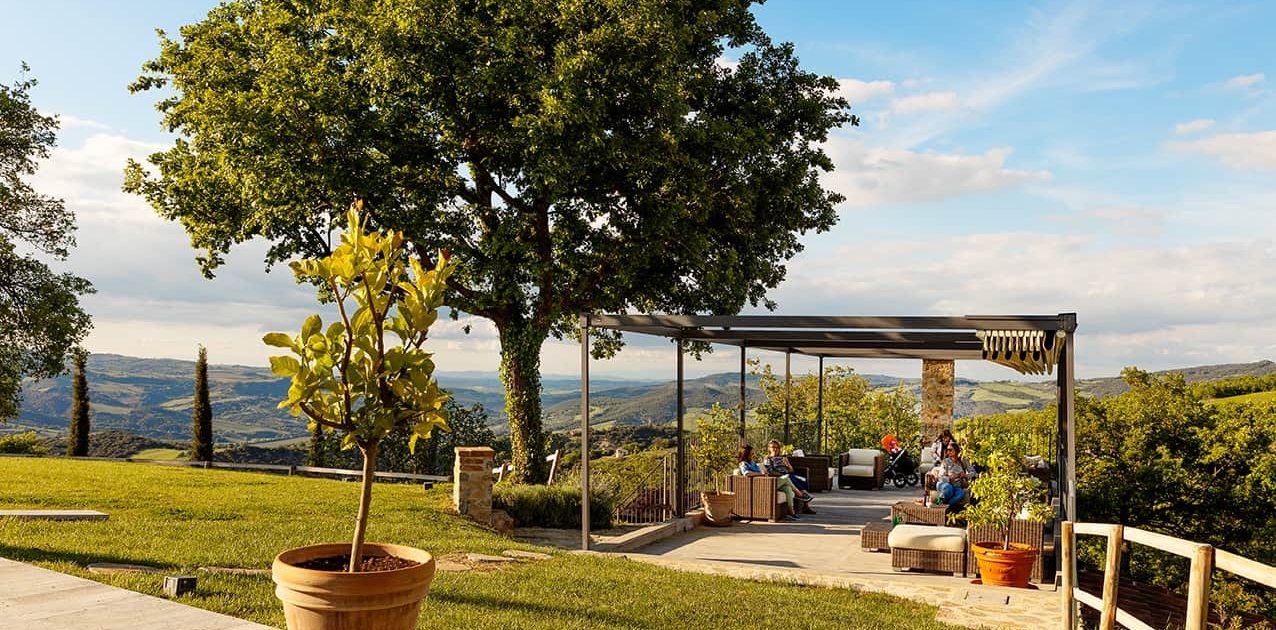 Ein lauer Sommerabend in der Toskana beginnt mit einem Aperitivo. In der Lounge neben dem Schwimmbad können Sie verweilen und ihren Lieblingsdrink geniessen.