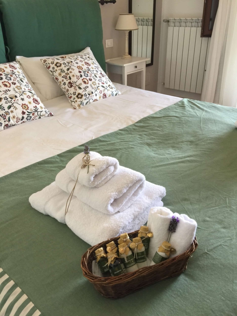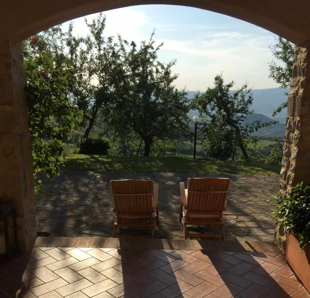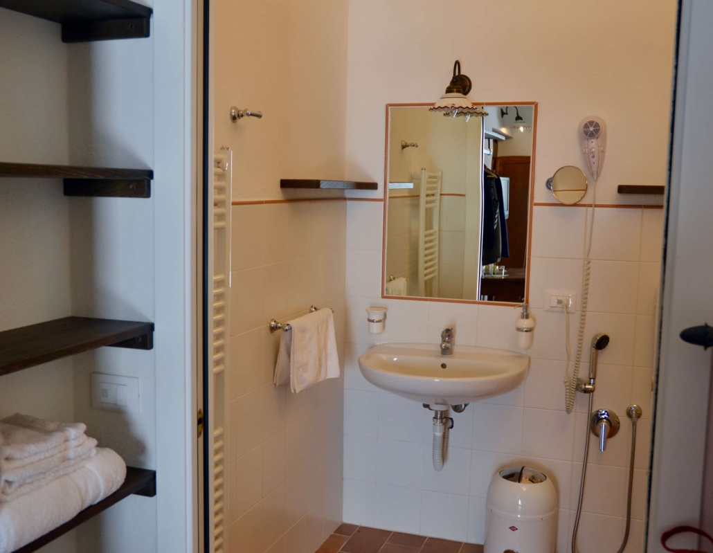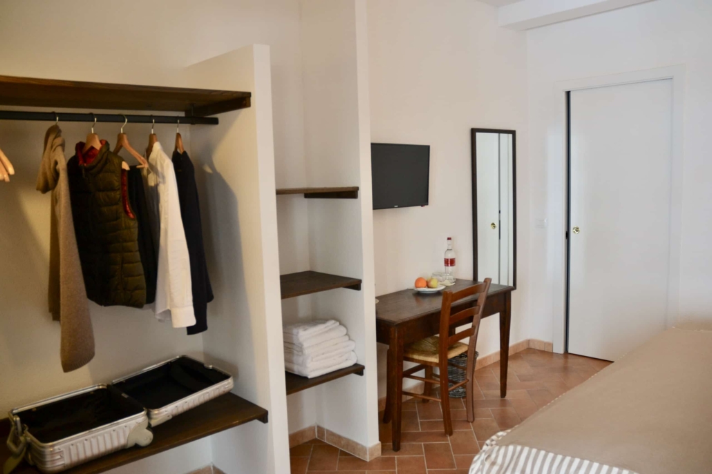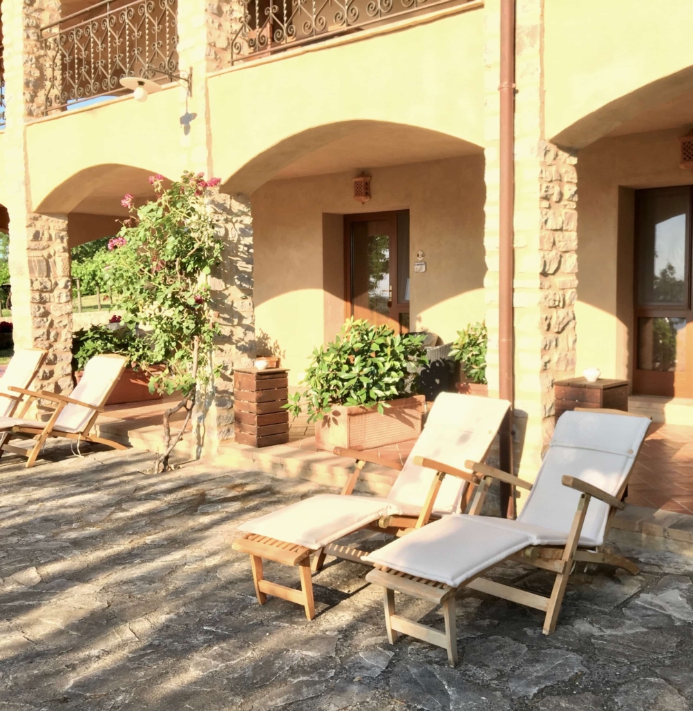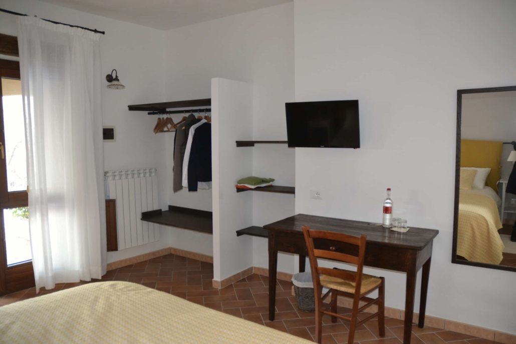 In der «Casa Padronale», Westseite, Parterre: Befinden sich 3 Doppelzimmer (Girasole, Cipresso und Rosmarino) jeweils mit Badezimmer/Dusche, TV und Terrasse mit Aussicht auf die Val d’Orcia