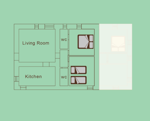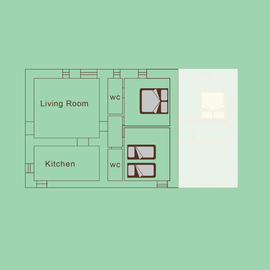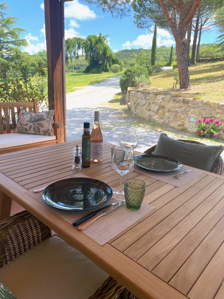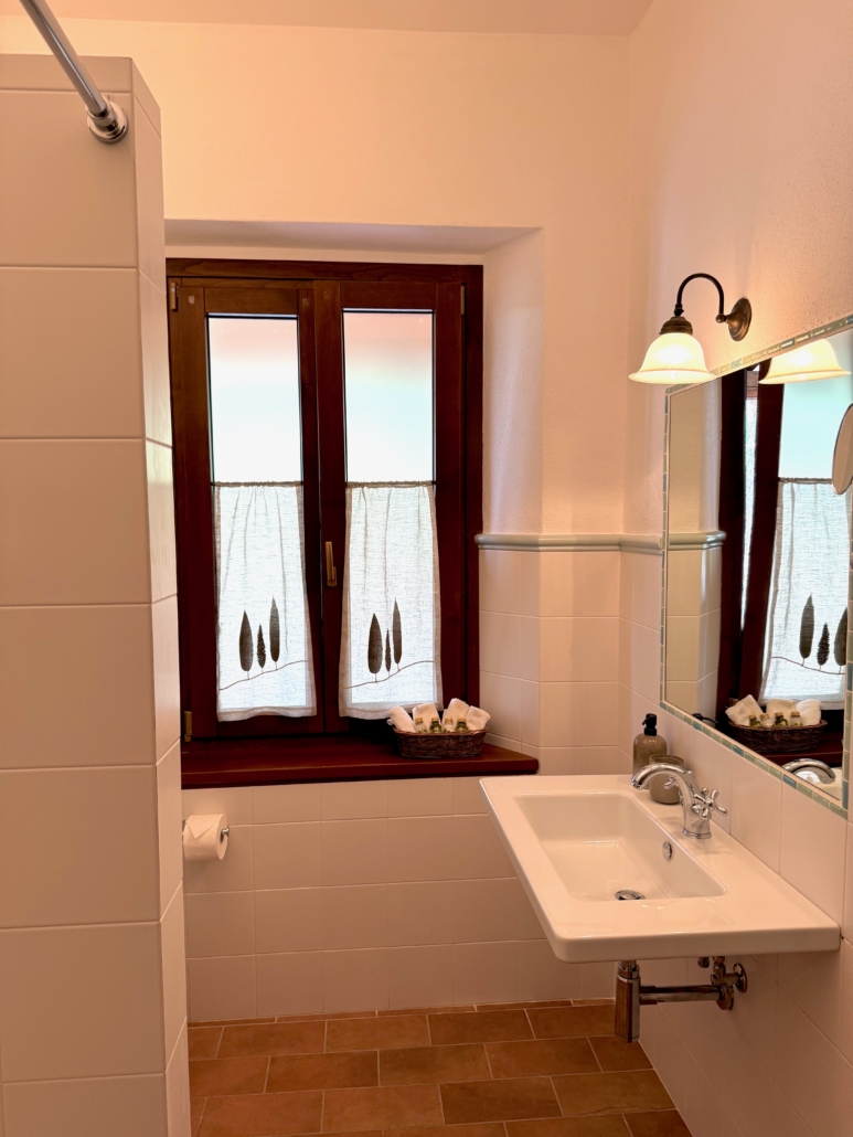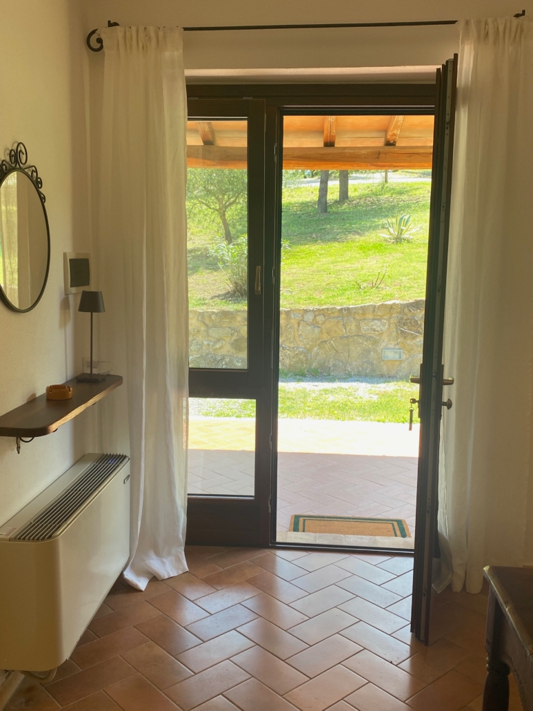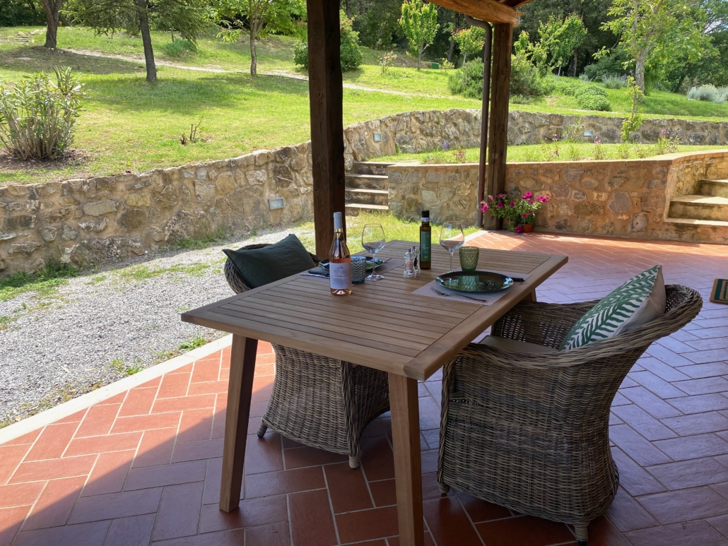 1-Zimmerwohnung mit 1 Doppelzimmer, 1 Badezimmer/Dusche und grosse Terrasse mit Aussicht auf die Val d’Orcia.